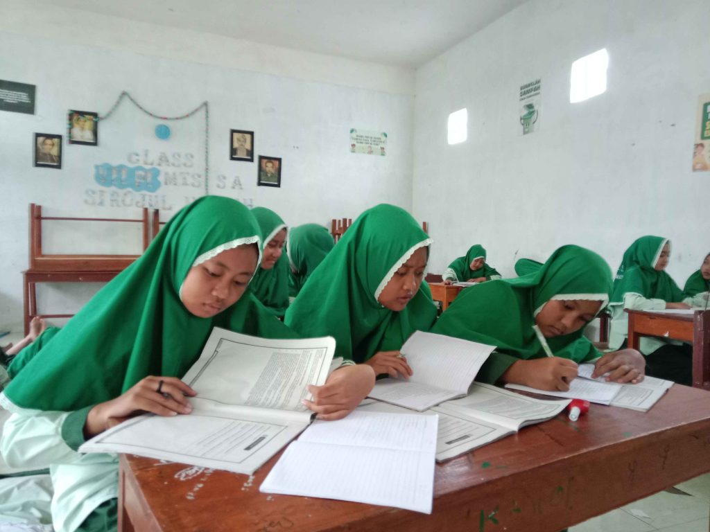 Kegiatan seni tulis indah huruf Arab yang melatih ketelitian, kesabaran, dan kreativitas dalam menghasilkan karya bernilai estetika Islami.